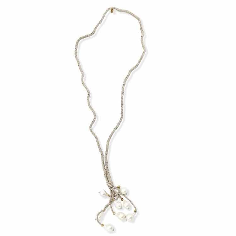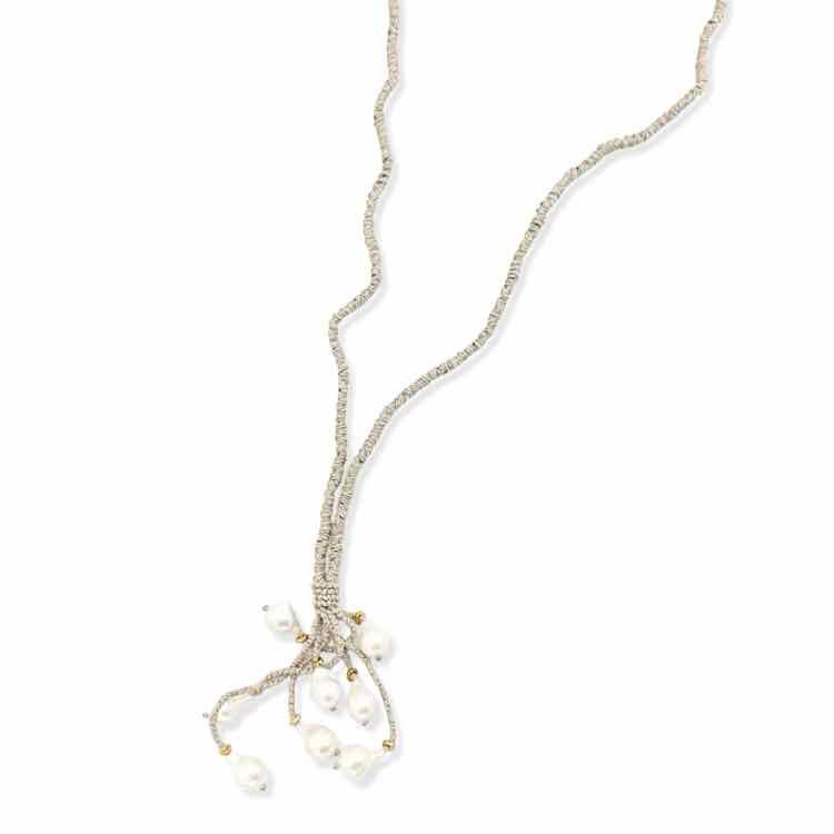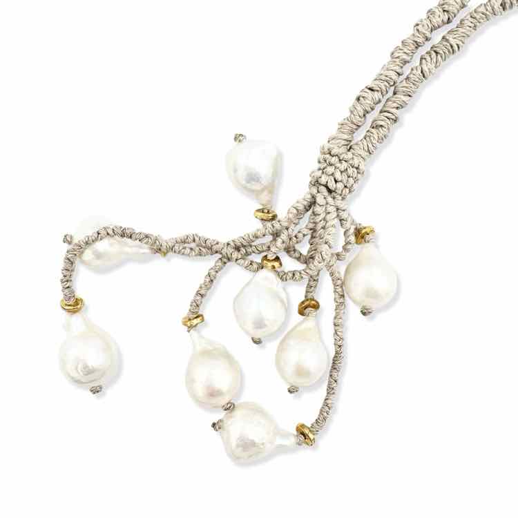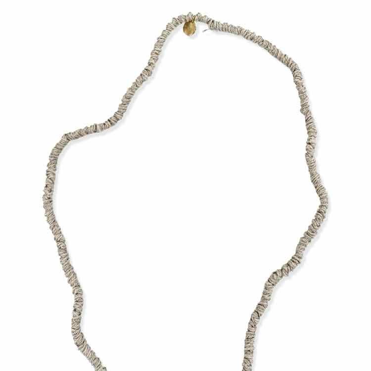 taupe linen cord necklace w/baroque pearls