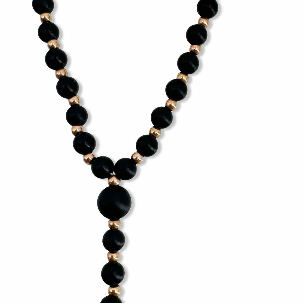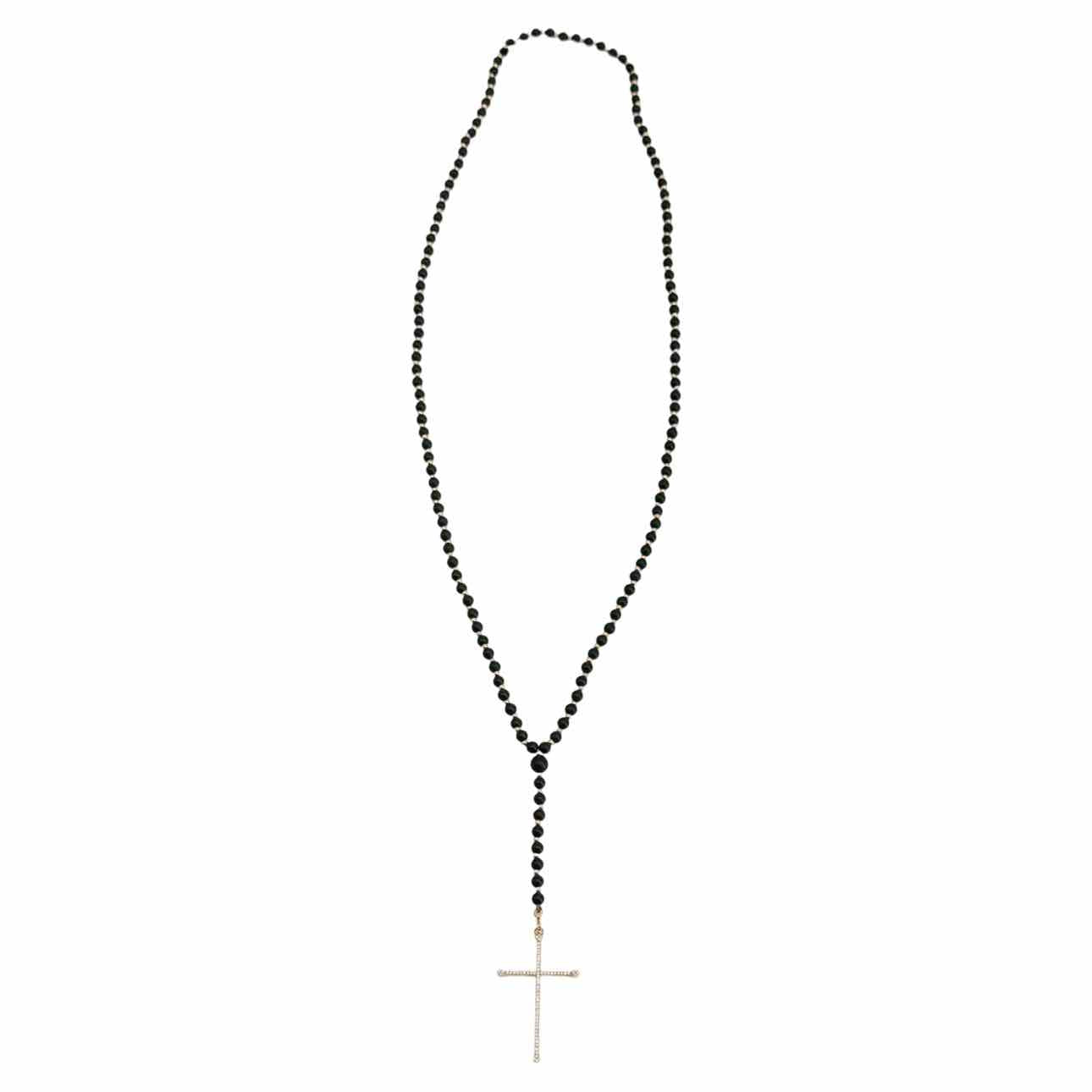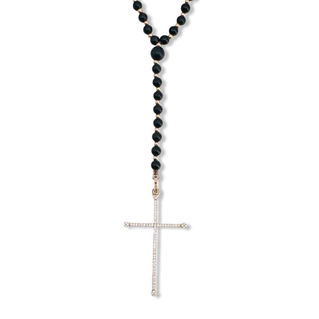 18K gold & black onyx bead necklace with diamond cross pendant