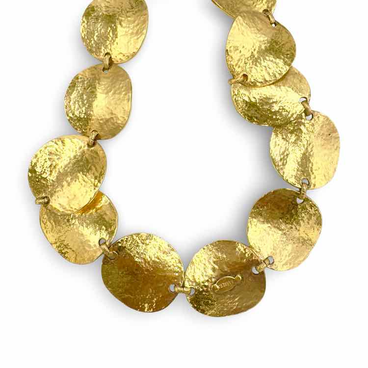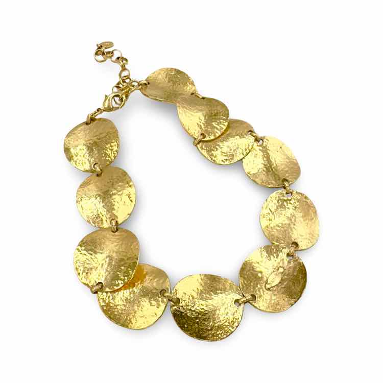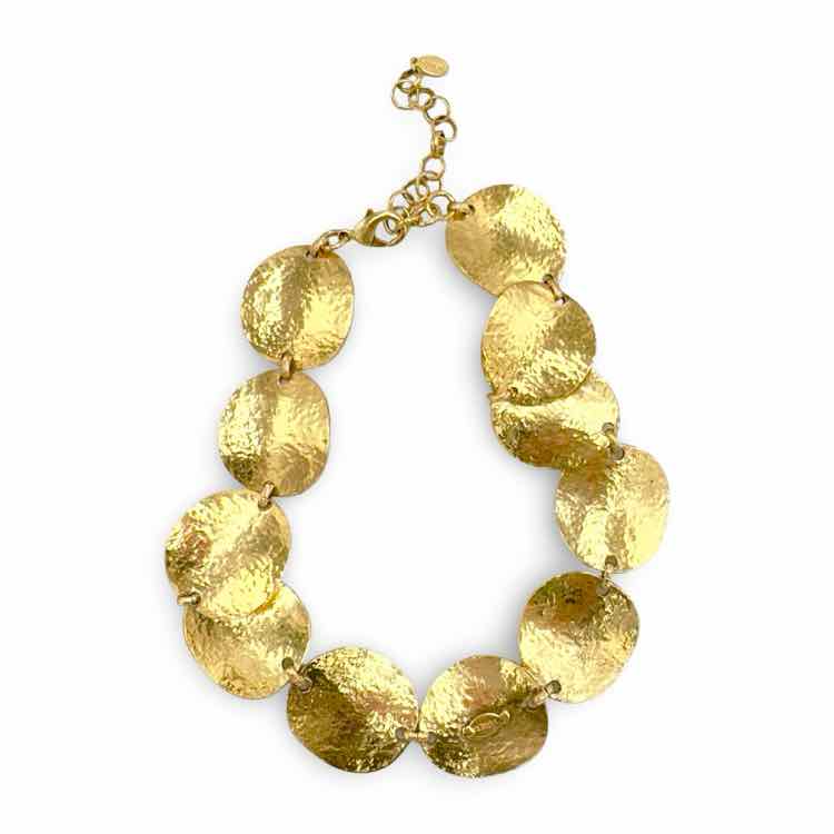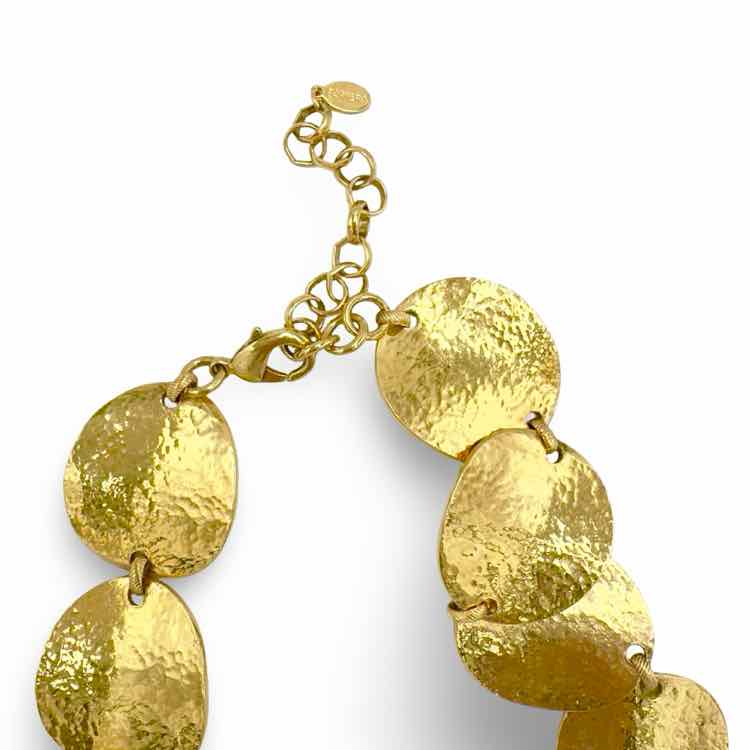Elevate your style with the Jose & Maria Barrera hammered goldtone discs necklace. This stunning piece features textured gold discs that catch the light beautifully, adding a warm, sophisticated glow to any outfit. Perfect for layering or wearing alone, it effortlessly enhances your look with a touch of artisanal elegance. Durable and versatile, this necklace is designed to become a cherished staple in your jewelry collection.